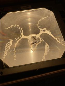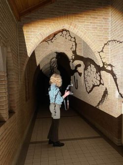 Schaduwen – gerealiseerd door licht en projectie – pas ik toe om structuur tot leven te brengen. Ik geef mijn werk er een andere dimensie mee.